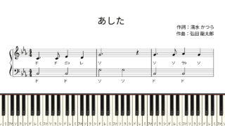 【ドレミ付き簡単ピアノ楽譜】あした 作詞:清水かつら 作曲:弘田龍太郎 / おかあさま なかずに ねんねいたしましょ | 初心者向け