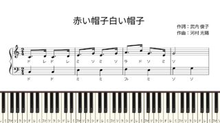 【ドレミ付き簡単ピアノ楽譜】赤い帽子白い帽子 作詞:武内俊子 作曲:河村光陽 / あかいぼうし しろいぼうし なかよしさん | 初心者向け
