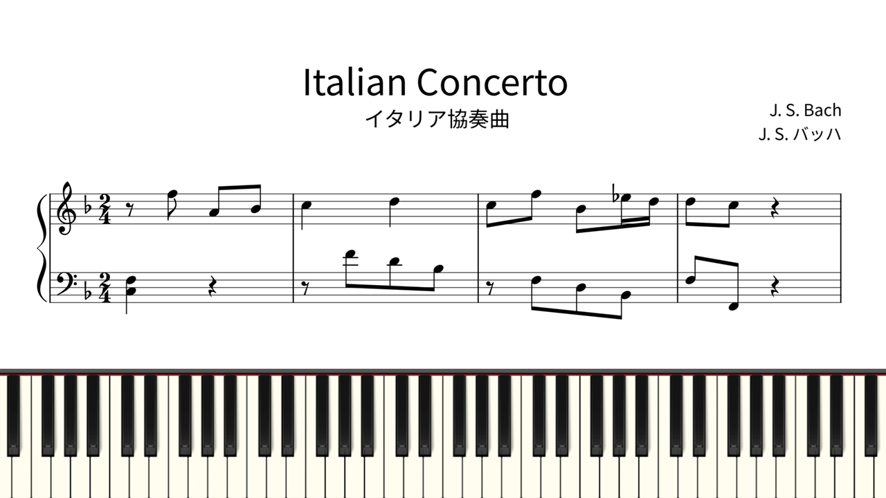 【簡単ピアノ楽譜】イタリア協奏曲 BWV 971 J. S. バッハ / Italian Concerto BWV 971 – Johann Sebastian Bach / BWV971 | Easy Piano Tutorial X Facebook はてブ LINE コピー 2026.01.07 【簡単ピアノ楽譜】 イタリア協奏曲 BWV 971Italian Concerto BWV 971ヨハン・ゼバスティアン・バッハJohann Sebastian Bach 🎼 楽譜(BOOTH) 音名なし楽譜 ドレミ付き楽譜 ABC付き楽譜 🎼 楽譜(Piascore) 音名なし楽譜 ドレミ付き楽譜 ABC付き楽譜 ▶️ 演奏動画:YouTube