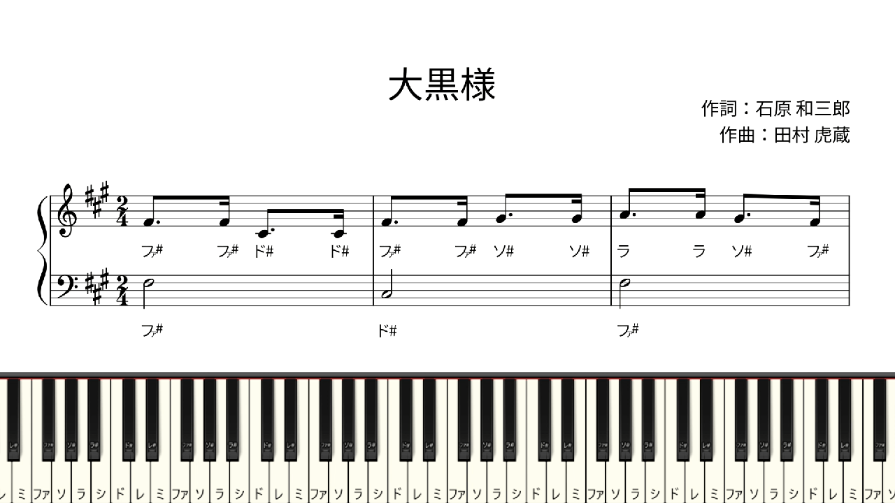 【ドレミ付き簡単ピアノ楽譜】大黒様 作詞:石原和三郎 作曲:田村虎蔵 / 大きな袋を 肩にかけ / おおきなふくろを かたにかけ / 大黒さま / だいこくさま | 初心者向け X Facebook はてブ LINE コピー 2025.11.052025.11.29 【ドレミ付き簡単ピアノ楽譜】 大黒様作詞:石原 和三郎作曲:田村 虎蔵 🎼 楽譜(BOOTH)【ドレミ付き簡単ピアノ楽譜】大黒様 🎼 楽譜(Piascore)【ドレミ付き簡単ピアノ楽譜】大黒様 ▶️ 演奏動画:YouTube