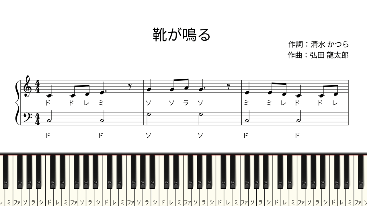 【ドレミ付き簡単ピアノ楽譜】靴が鳴る 作詞:清水かつら 作曲:弘田龍太郎 / おてて つないで のみちを ゆけば / くつが鳴る / くつがなる | 初心者向け X Facebook はてブ LINE コピー 2025.10.212025.11.27 【ドレミ付き簡単ピアノ楽譜】 靴が鳴る作詞:清水 かつら作曲:弘田 龍太郎 🎼 楽譜(BOOTH)【ドレミ付き簡単ピアノ楽譜】靴が鳴る 🎼 楽譜(Piascore)【ドレミ付き簡単ピアノ楽譜】靴が鳴る ▶️ 演奏動画:YouTube