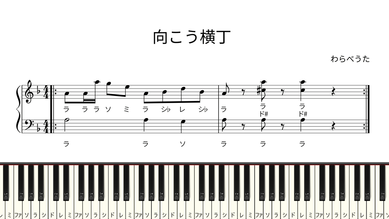 【ドレミ付き簡単ピアノ楽譜】向こう横丁 わらべうた / むこうよこちょうの おいなりさんへ / 向う横丁 | 初心者向け