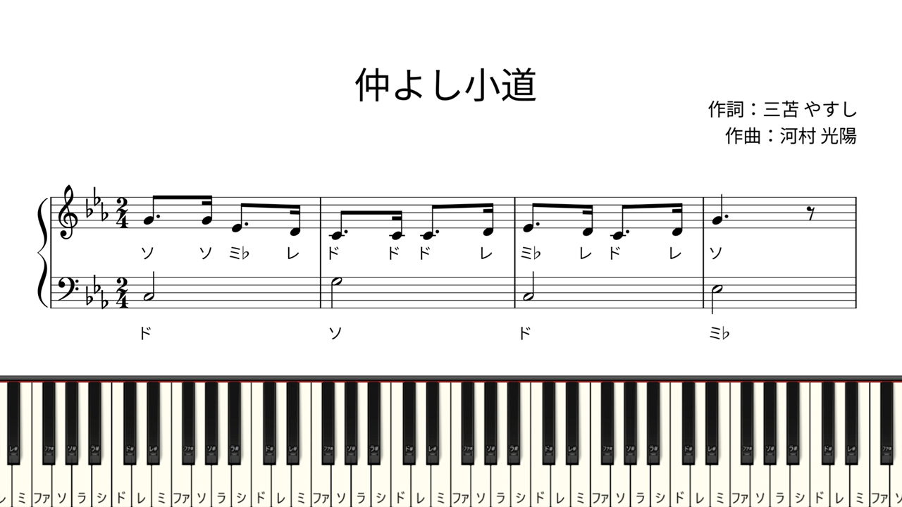 【ドレミ付き簡単ピアノ楽譜】仲よし小道 作詞:三苫やすし 作曲:河村光陽 / なかよしこみちは どこのみち / なかよしこみち | 初心者向け X Facebook はてブ LINE コピー 2025.11.162025.11.30 【ドレミ付き簡単ピアノ楽譜】 仲よし小道作詞:三苫 やすし作曲:河村 光陽 🎼 楽譜(BOOTH)【ドレミ付き簡単ピアノ楽譜】仲よし小道 🎼 楽譜(Piascore)【ドレミ付き簡単ピアノ楽譜】仲よし小道 ▶️ 演奏動画:YouTube
