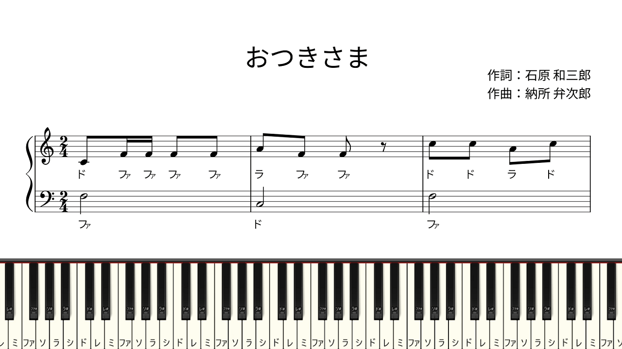 【ドレミ付き簡単ピアノ楽譜】おつきさま 作詞:石原和三郎 作曲:納所弁次郎 / おつきさま えらいな / お月さま | 初心者向け X Facebook はてブ LINE コピー 2025.10.04 【ドレミ付き簡単ピアノ楽譜】 おつきさま作詞:石原 和三郎作曲:納所 弁次郎 🎼 楽譜(BOOTH)https://doreminotes.booth.pm/items/7500231 YouTube