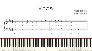童謡・民謡 【ドレミ付き簡単ピアノ楽譜】里ごころ 作詞:北原白秋 作曲:中山晋平 / ふえや たいこに さそわれて | 初心者向け