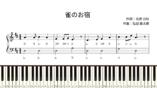 童謡・民謡 【ドレミ付き簡単ピアノ楽譜】雀のお宿 作詞:北原白秋 作曲:弘田龍太郎 / 笹薮 小薮 / ささやぶ こやぶ | 初心者向け