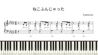 童謡・民謡 【ドレミ付き簡単ピアノ楽譜】ねこふんじゃった / Der Flohwalzer / 猫踏んじゃった / Flea Waltz / 猫ふんじゃった