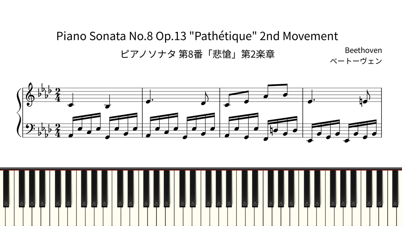【簡単ピアノ楽譜】ピアノソナタ 第8番「悲愴」第2楽章 ベートーヴェン / Piano Sonata No.8 Op.13 “Pathétique” 2nd Movement – Ludwig van Beethoven | Easy Piano Tutorial X Facebook はてブ LINE コピー 2026.01.312026.02.01 【簡単ピアノ楽譜】 ピアノソナタ 第8番「悲愴」第2楽章Piano Sonata No.8 Op.13 “Pathétique” 2nd Movementルートヴィヒ・ヴァン・ベートーヴェンLudwig van Beethoven 🎼 楽譜(BOOTH) 音名なし楽譜 ドレミ付き楽譜 ABC付き楽譜 🎼 楽譜(Piascore) 音名なし楽譜 ドレミ付き楽譜 ABC付き楽譜 ▶️ 演奏動画:YouTube